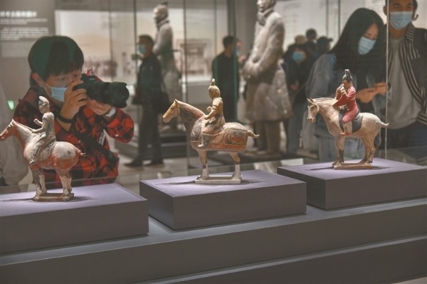 图为近日,游客在参观陕西考古博物馆。 (图片来源:视觉中国)